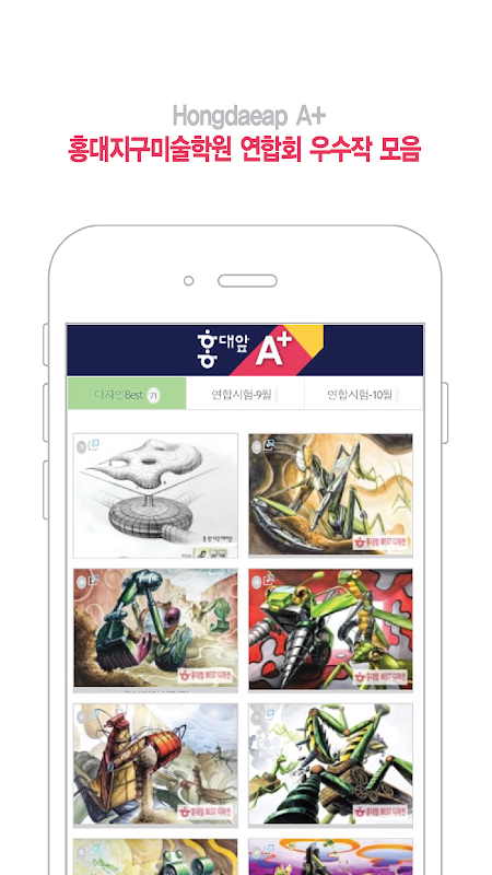 홍대앞미술학원 연합회에서 전국연합시험 우수작을 앱을 통해 공개합니다.