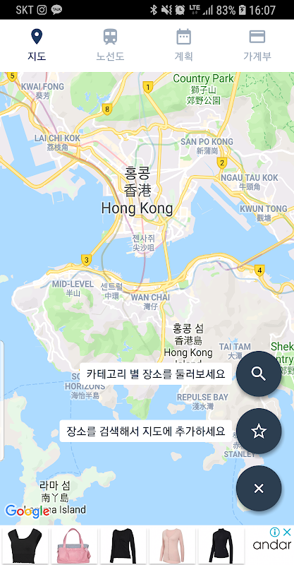 - 지도 (홍콩 지도, 지도 탐색 및 장소 저장)