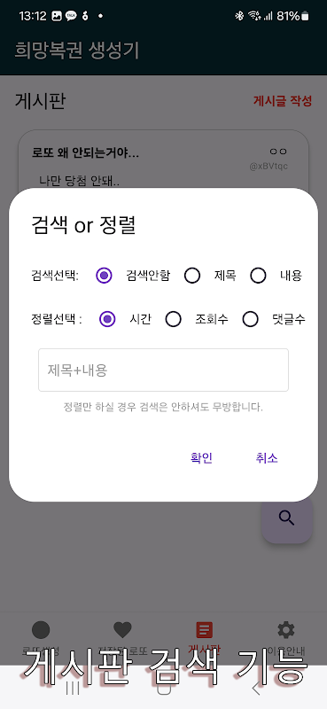 희망 로또 - 번호 생성기, 커뮤니티, 성공 1.1.1