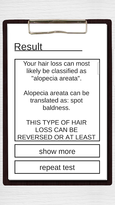 To answer this question, we have developed a new and advanced medicine algorithm that simulates an interview between you and a doctor. In the context of this simulated interview our app will find out the exact cause of your hair loss and will present you the right solution for new hair growth.