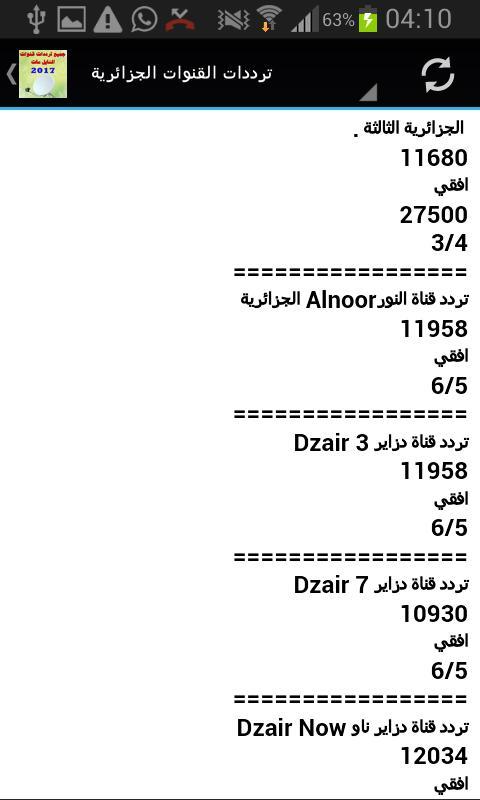 فيما يلي قائمة ترددات القنوات التي توجد في هذا التطبيق