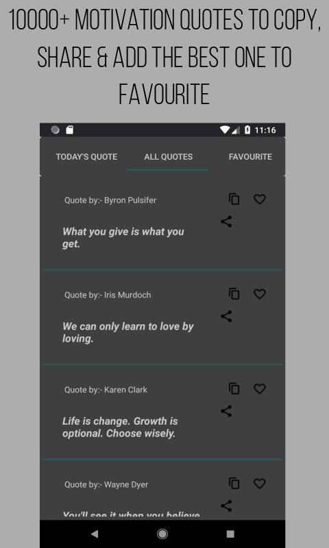 به نفوذ ترین برنامه به نقل از انگیزه خوش آمدید. "نقل قول انگیزشی" یک مجموعه بزرگ از تقویت انرژی به نقل از انگیزه است. این قطعا تبدیل مربی شخصی خود را، اگر شما از آن استفاده روزانه.