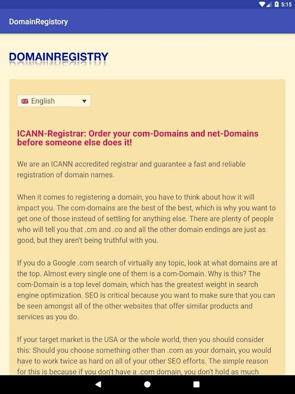 شما ممکن است خود را انجام بی عدالتی بزرگ بوسیله ته نشینی برای یک دامنه متفاوت است. دلیلی وجود ندارد که شما می توانید یک دامنه های com می کنید وجود دارد. نه تنها آن است که رفتن به دامنه برای ایالات متحده است، اما برای بقیه جهان است. هنوز مقدار زیادی از ترکیبات دامنه سمت چپ وجود دارد که پایان به .com، بنابراین شما هیچ بهانه ای برای رفتن به پایان دامنه دیگر.