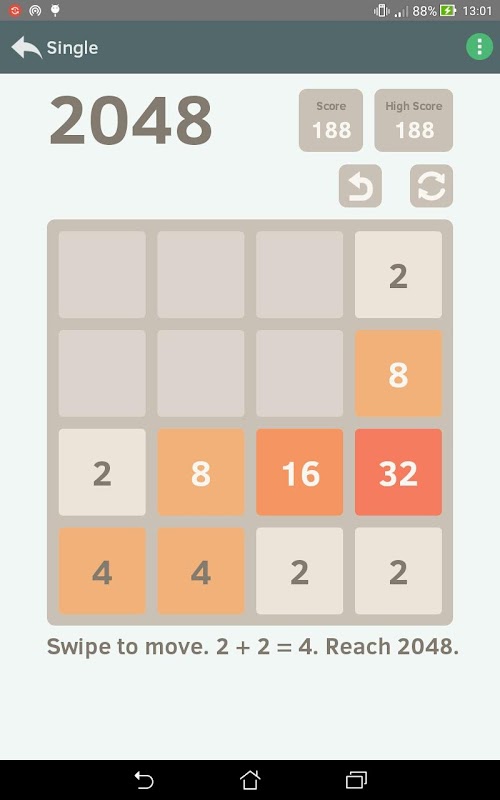 輕掃以移動方塊,當兩個具有相同數字的方塊碰在一起,它們會合併成一個方塊。