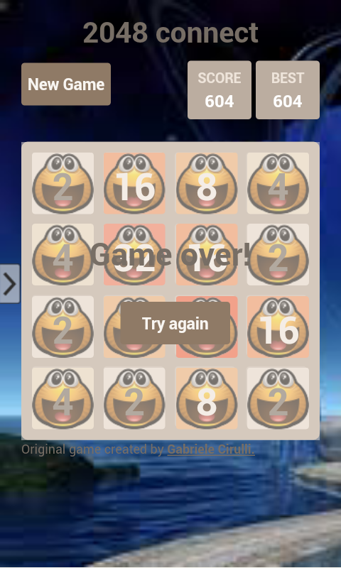fun to play. connect each of the same number to multiply. the bigger the number the higher the score. try to make it to 2048. slide your finger from each number to connect.