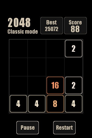 Swipe (or touch the screen) to move the all tiles. When two tiles with the same number touch they merge into one. You win when 2048 tile is created.