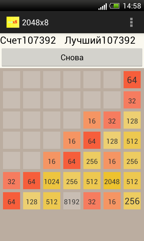 2048h8 game for those who are tired of small uncertain twos and wants to play once more than 16!