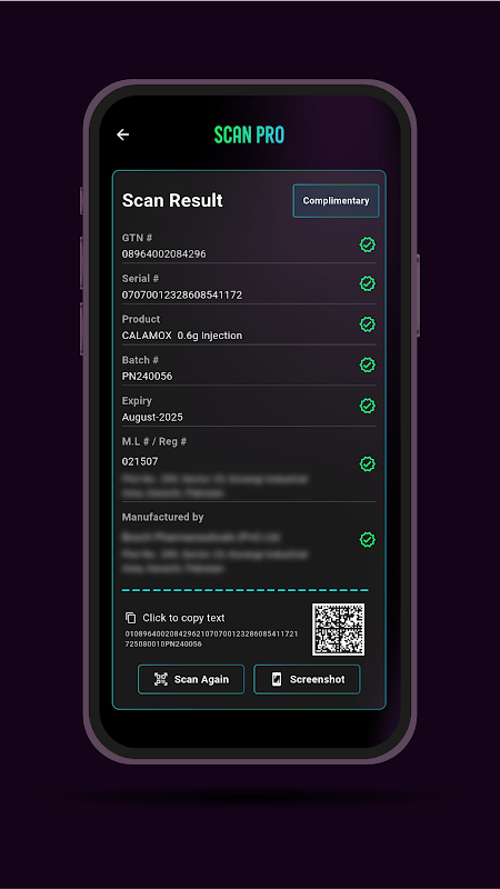 برنامه Scan Pro به کاربران اجازه می دهد تا محصولات دارویی را با استفاده از تلفن های هوشمند خود اسکن، رمزگشایی، شناسایی و ردیابی کنند. این به مصرف کنندگان امکان می دهد به اطلاعات قابلیت ردیابی دسترسی داشته باشند. که می تواند در داخل سازمان، در بین شرکای تجاری برای عملکردهای دقیق تر مانند لجستیک داخلی، فروش یا برنامه های توزیع استفاده شود.