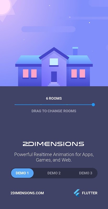 This 3-part demo shows that Flutter can seamlessly combine user interface elements with 60fps animated graphics in real-time. The animations are created using 2Dimensions’ animation tools Nima (raster-based) and Flare (vector-based), both of which export to Flutter.