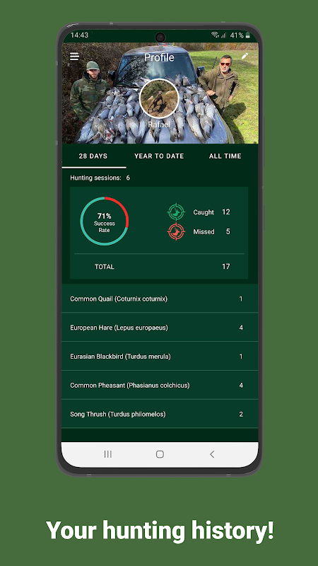 دفترچه گزارش شکار، آمار و نمودارها همه در یک برنامه با فشار یک دکمه.