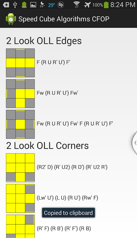 این برنامه به سادگی نمودار مرجع برای روش حل مکعب روبیک 2-نگاه OLL CFOP (Fridrich) را نشان می دهد. این است که برای استفاده به عنوان یک مرجع برای یادگیری روش CFOP مردم در نظر گرفته شده. روش CFOP است رایج ترین روش استفاده می شود در میان cubers سرعت، آن است که برای مبتدیان که تنها یادگیری برای حل مکعب برای اولین بار طراحی شده است. 2-نگاه به روش CFOP OLL است برای کسانی که می خواهند به محدود کردن تعداد از الگوریتم های آنها باید برای گام گرایش حفظ از 57 الگوریتم فقط 10. الگوریتم ارائه شده در اینجا از آنهایی که محبوب ترین استفاده می شود، و طراحی شده اند به سرعت ، به جای کوتاه است.