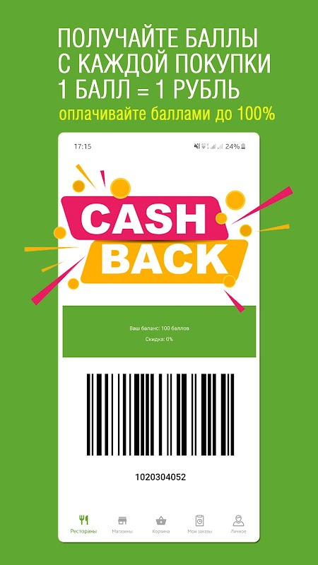 - For each order, bonus points are awarded, which can be further used by exchanging them for food;
