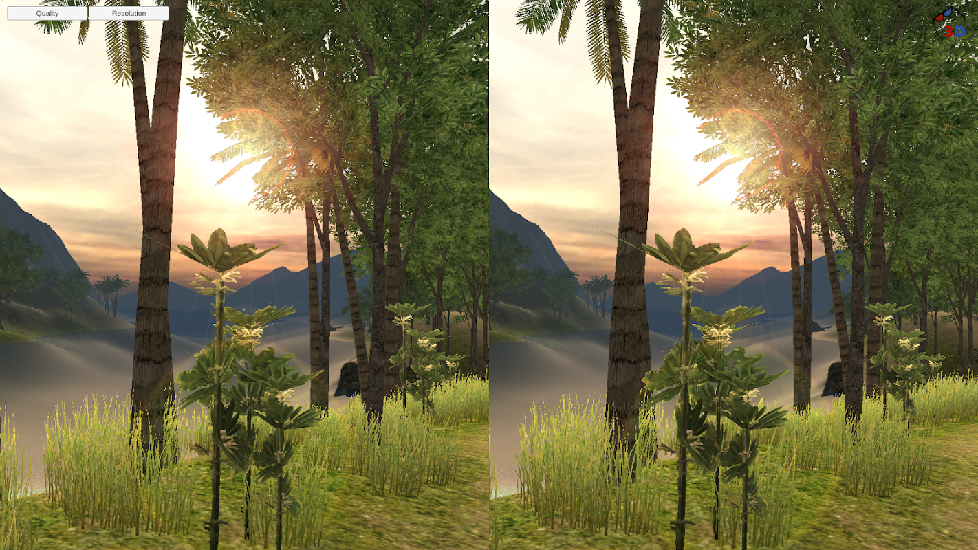 You may recognise the 3D world from the Tropical Paradise Unity demo http://unity3d.com/showcase/live-demos#tropical-paradise. The demo, originally for Unity 3, has been adapted to play nicely with the free version of Unity 4.6.
