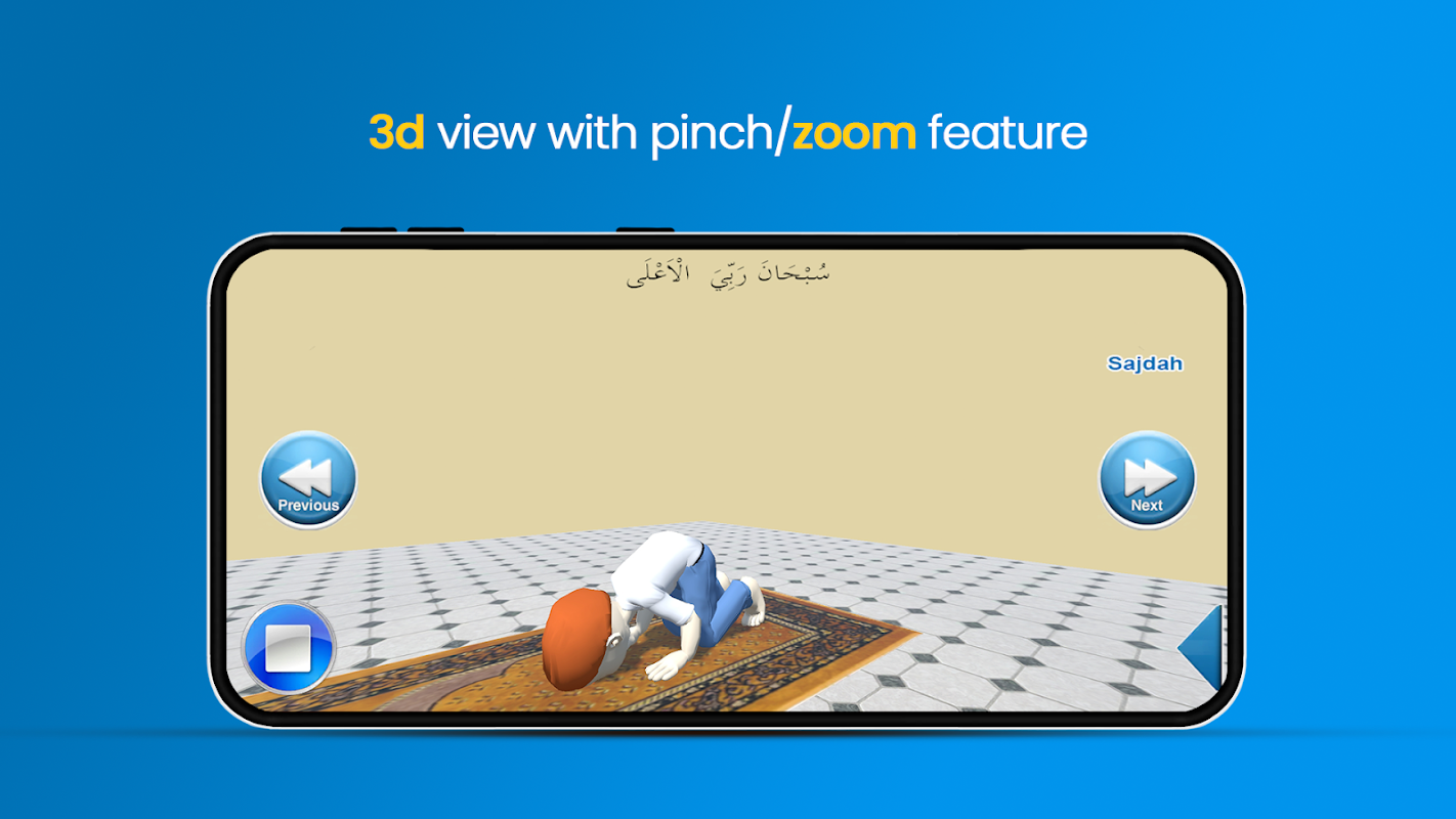 تصاویر سه بعدی تعاملی: مدل های سه بعدی دقیق را کاوش کنید که هر مرحله از نماز صلاح را نشان می دهد، از تکبیر افتتاحیه تا تسلیم نهایی. بچرخانید، زوم کنید، و حرکات را از همه زوایا مشاهده کنید تا درک واضحی به دست آورید.