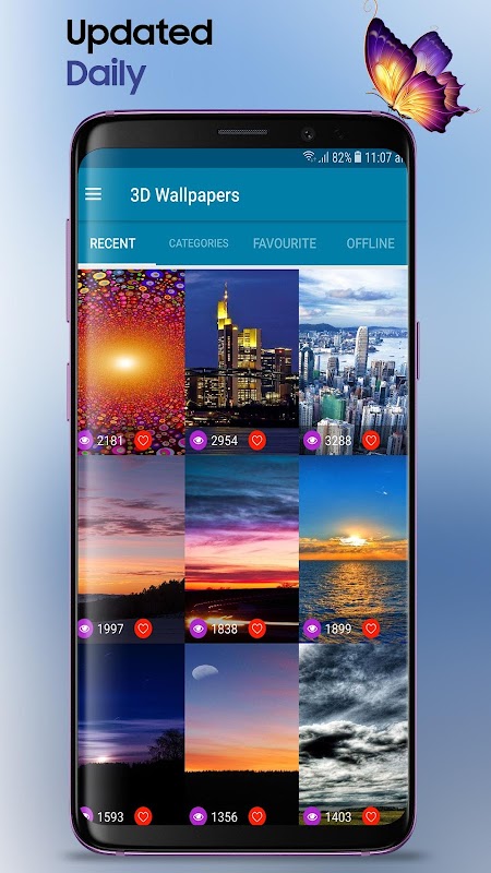 ✓ ما طیف گسترده ای از دسته بندی ها را در داخل برنامه خود داریم تا بهترین تصاویر پس زمینه HD 3D را انتخاب کنیم.