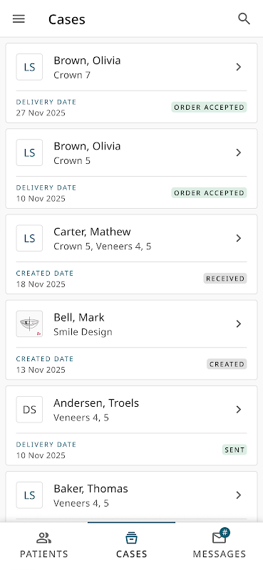 از تجربه نهایی اسکن و ارسال با Unite Cloud لذت ببرید: برنامه رسمی 3Shape که به شما امکان می دهد با همکاران خود به روز بمانید، کار خود را به طور ایمن از هر دستگاه و مکانی مدیریت کنید و به آن دسترسی داشته باشید. هر کاری که در 3Shape Unite انجام می دهید، فوراً در Unite Cloud در دسترس می شود و بالعکس.