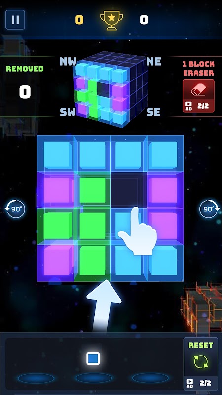 - یک بازی پازل که در آن مکعب یک مکعب 4X4 چرخانده میشود و قطعه پازل بدون فاصله پر میشود تا ضلع را پاک کند و امتیاز کسب کند.