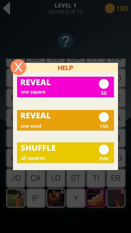 Guess the hidden word using the photo for the clue, the words are divided into fragments, the riddles are of different complexity, from easy words, which take seconds to solve complex words, which will take a lot of time to resolve.