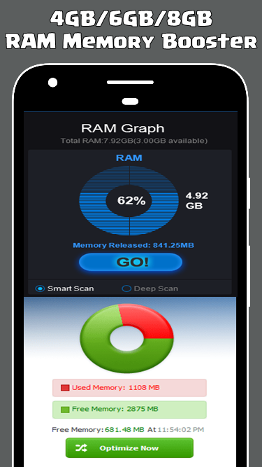 Drive the performance of your device with just one touch and optimize RAM and lots of other things to play games, and get more performance! 6 GB Application RAM booster is a useful tool to optimize memory performance and faster. The best part of this 6 GB RAM Upgrade Prank App is this application is very easy to use and can push the RAM with just 1 touch only. Lots of Android devices with little RAM memory and limited battery capacity so this 6GB RAM thruster will give space on your device.