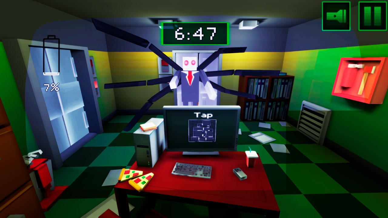 شما یک کار - یک نگهبان شب در خانه پیتزا مکعب. در روز، محل اقامت یکپارچه جذاب است. اما وقتی شب می آید موجودات وحشتناک از هیچ جا نمی آیند. آنها شروع به تعقیب شما می کنند. کلید ها را جمع کنید درب ها را باز کنید یا بسته کنید از چراغ قوه برای محافظت از خود از زامبی استفاده کنید. هفت شب در این وحشت زنده بمانید! از یک مقدار محدود برق در هر شب استفاده کنید. در اتاق امن خود بمانید و دوربین را تماشا کنید. این حرکتهای مرده تنها در تاریکی حرکت می کنند. اما هنگامی که از قدرت بیرون می روید - تمام چراغ ها و دوربین ها خاموش می شوند. زمان آن رسیده است! انسان باریک و هیولا مکعب خود شروع به شکار برای شما می کند.