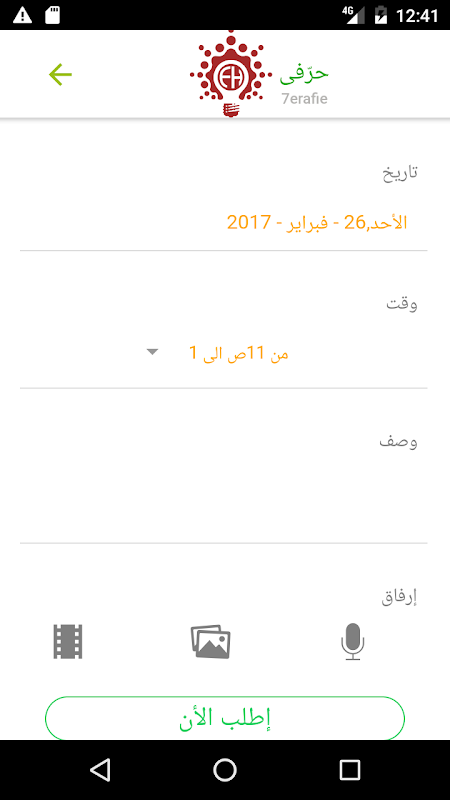 -- يمكنك بعد ذلك تحديد وتوصيف الخدمة التى ترغب بها بكل سهوله حيث يتميز التطبيق بسلاسه وسهوله استخدام