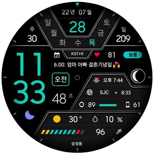 나인워치에서 제작한 한국어 전용 하이브리드 워치페이스 입니다.
