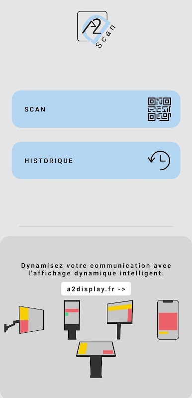 A2Scan ، برنامه خواننده QR-Code است که توسط A2display توسعه یافته است.