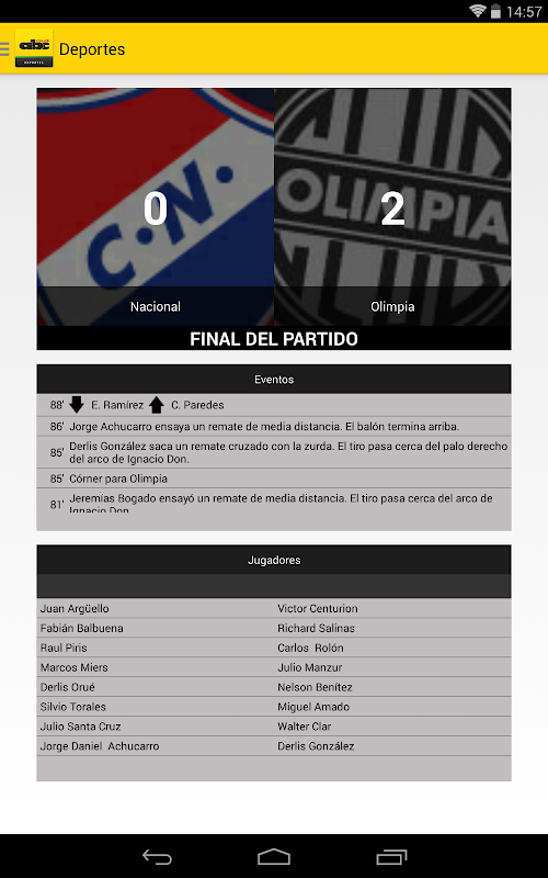 ABC Deportes le permitirá seguir el minuto a minuto de los encuentros del fútbol paraguayo y de los equipos paraguayos en juegos internacionales.