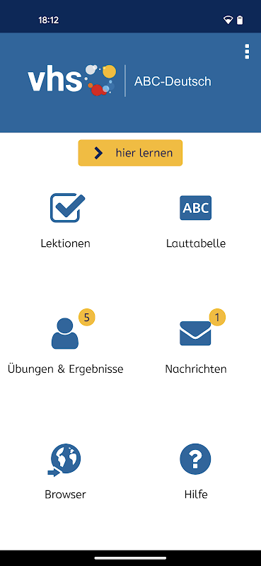 زبان آلمانی پایه و الفبای لاتین را به صورت رایگان یاد بگیرید. ABC-Deutsch نسخه ویژه تلفن همراه ABC-Deutschkurs در https://vhs-lernportal.de است. با این اپلیکیشن از همه عملکردهای ABC-Deutschkurs حتی به صورت آفلاین روی تلفن همراه هوشمند خود استفاده کنید.