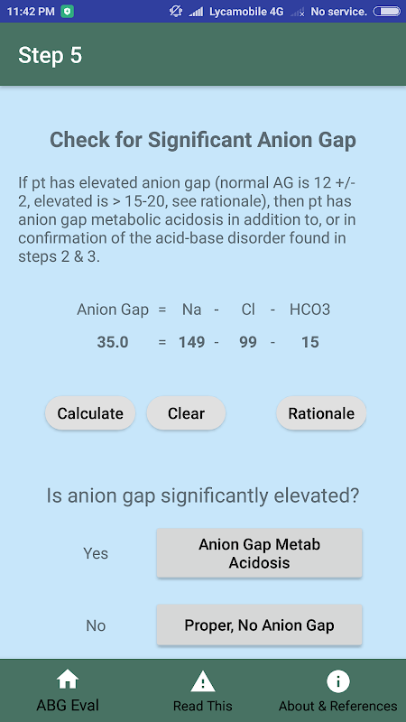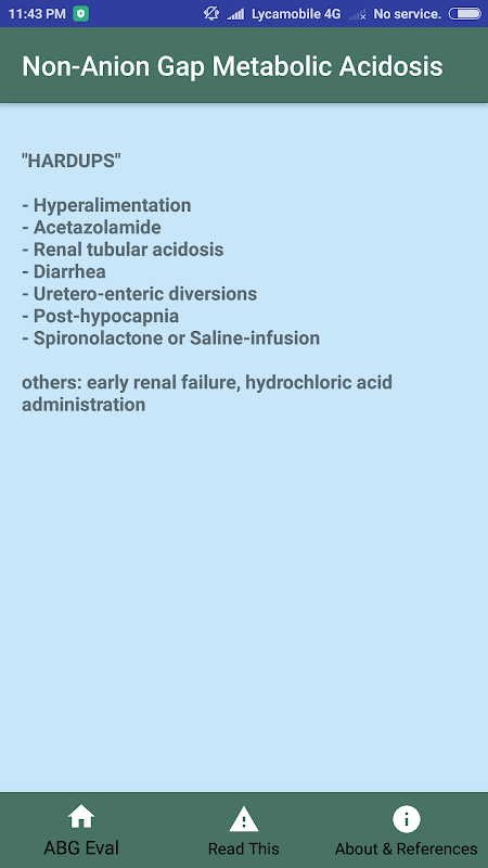 ABG Acid-Base eval یک پزشک را از طریق یک رویکرد گام به گام برای تجزیه و تحلیل ABG و الکترولیت ها راهنمایی می کند تا به اختلالات اسید-باز و ایده های تشخیصی در مورد بیماران بیمار برسد. این ابزار بر اساس رویکرد گام به گام دکتر اریک روپارد، نه تنها پاسخ می دهد، بلکه به همان اندازه مهم فرآیند تفکر گام به گام و مفاهیم لازم را در طول مسیر آموزش می دهد. یک پزشک یا یادگیرنده اطلاعات خوبی به دست میآورد که به مراقبت از بیمار کمک میکند و باید در دفعه بعد کمی هوشمندتر و قادر به انجام آن با کمک کمتر باشد. این یک پشتیبانی عالی برای آن دسته از پزشکانی است که فقط گاهی از این آزمایشات استفاده می کنند و آن را حفظ نمی کنند. تشخیص های افتراقی شامل حافظه های کلاسیک مانند MUDPILERS، CHAMPS، CLEVER PD، و HARDUPS، همراه با توضیح و مثال است.