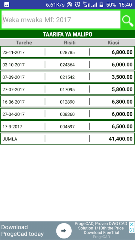 3. Taarifa ya malipo aliyowahi kufanya
