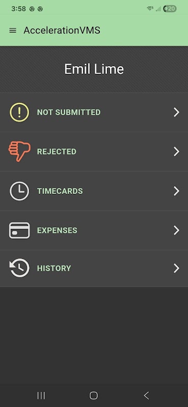 برنامه موبایل AgileOne AccelerationVMS برای کارگران/پیمانکاران مشروط مکمل کاملی برای فرآیند تدارکات نیروی کار ما است. این برای کارگران / پیمانکاران مشروط طراحی شده است تا کارت های زمانی و هزینه های خود را در AccelerationVMS وارد کنند. این برنامه به کاربر اجازه می دهد تا وضعیت فعلی را مشاهده کند و تاریخچه تمام کارت های زمانی و هزینه ها را بررسی کند. کاربر برای دسترسی به برنامه باید یک نام کاربری و رمز عبور معتبر داشته باشد.