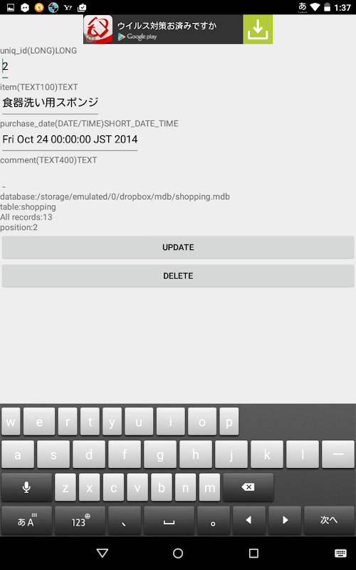 By clicking the item of the list , you can move to the screen for DELETE, or UPDATE.