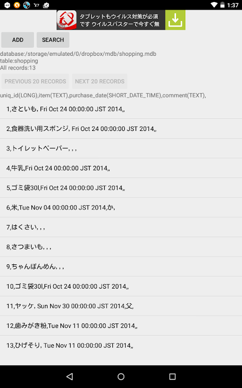 I am still beginner of developing Android application. There must be some other inconveniences and bugs as well as restrictions.Please use this application carefully. If you are treating important data, please do not use this application.