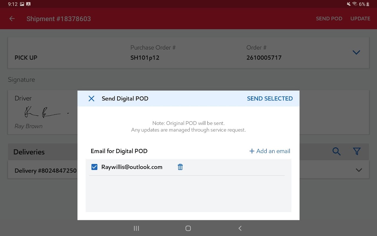 E-channel for delivery confirmation and receipt process of ExxonMobil products