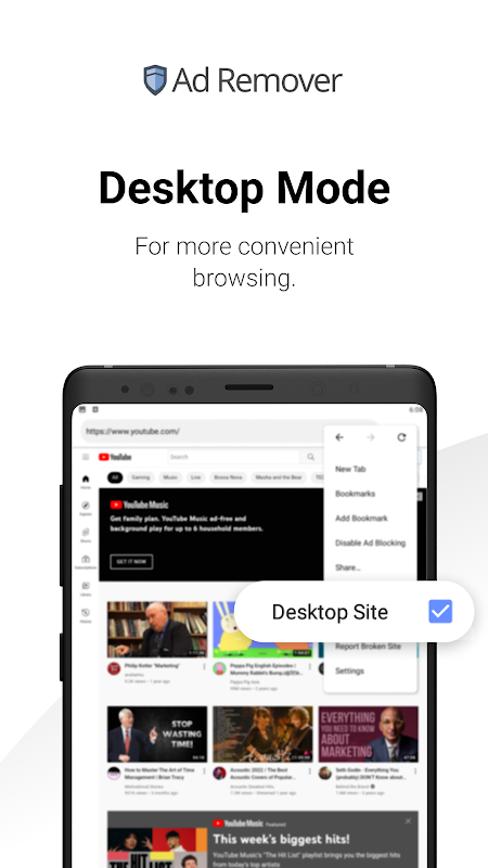Ad Blocker – Ad Remover تبلیغات وب سایتی را مسدود می کند که شما را از لذت بردن از مرور آرام باز می دارد. در هر زمان می توانید این ویژگی را فعال یا غیرفعال کنید.
