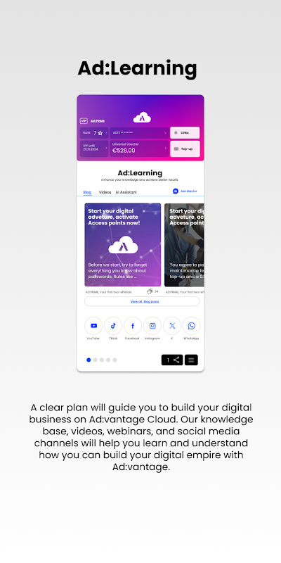 با مجموعه گسترده پست ها، ویدئوها و بحث های ما در مورد اقتصاد دیجیتال و آینده کسب و کار مطلع باشید. از دستیار هوش مصنوعی یا یک مربی انسانی ما استفاده کنید تا قدم به قدم شما را به سمت موفقیت راهنمایی کند.