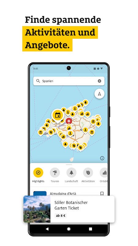برنامه ADAC Trips راه را برای خاطرات فراموش نشدنی هموار می کند. به محض اینکه تمام اطلاعات و ایده های سفر را کشف کردید، می توانید تورها و تجربیات مورد علاقه خود را مستقیماً از برنامه رزرو کنید. فقط با یک ضربه انگشت خود را با تورهای ماجراجویی عکس، گشتهای شهری، دره نوردی و گشتهای چهارگانه، ساعات استراحت در حمامهای حرارتی و خیلی چیزهای دیگر مهمان کنید.