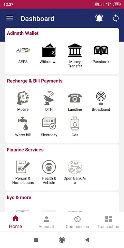Adinath provides money transfer,AEPS,Bill Payments, Mobile Recharge etc.