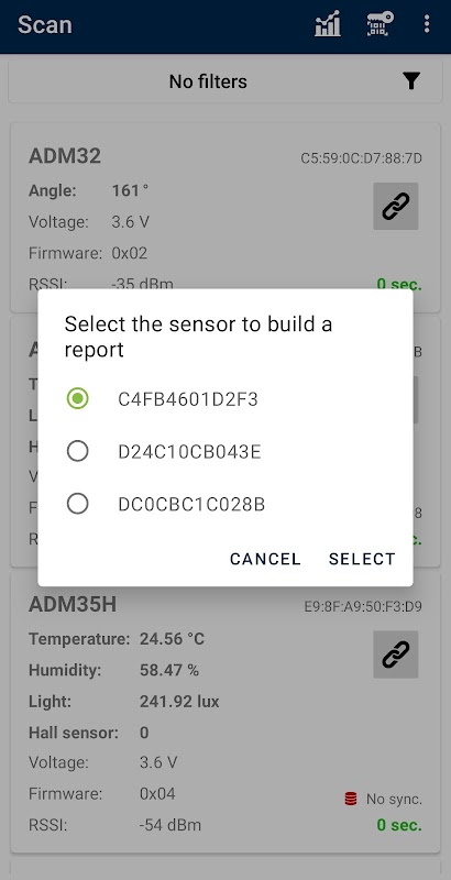 برنامه برای نظارت بر دستگاه های ADM BLE.