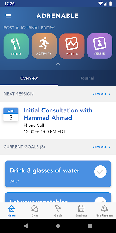 پلت فرم درمان خستگی آدرنال که توسط دکتر اندرو نویل ساخته شده است. این برنامه سازگار با HIPAA شامل ویژگی هایی برای کمک به بیماران برای غلبه بر علائم مزمن و بهبود آنها است. این برنامه ابزارها و منابع درمانی قدرتمندی از جمله ردیابی سلامت، دوره های آموزشی و یادآورهای انگیزشی را ارائه می دهد. کاربران Adrenable همچنین می توانند به برنامه های درمانی و رویدادهای زنده دسترسی داشته باشند، با مربیان ارتباط برقرار کنند و به جامعه بپیوندند.