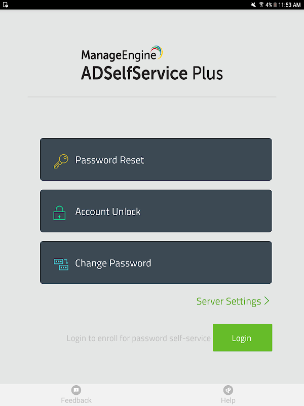 برنامه AndroidE مدیریتEngine ADSelfService Plus به کاربران نهایی با قابلیت مدیریت رمز عبور تلفن همراه توانمند است. با امکان تنظیم مجدد کلمه عبور فراموش شده Windows Active Directory و باز کردن قفل حسابهای دامنه غیرفعال شده "در حال حرکت" ، این برنامه به سرپرستهای IT کمک می کند تا تماس های راهنمای خدمات مربوط به مشکلات رمز عبور را کاهش دهند. با استفاده از این برنامه ، کاربران همچنین می توانند کلمات عبور خود را در طیف گسترده ای از برنامه های مبتنی بر ابر و سیستم های پیش فرض از جمله Google Apps ، Office 365 ، Salesforce ، Zoho ، IBM AS400 ، HP UX ، Oracle E-Business Suite و غیره همزمان کنند.