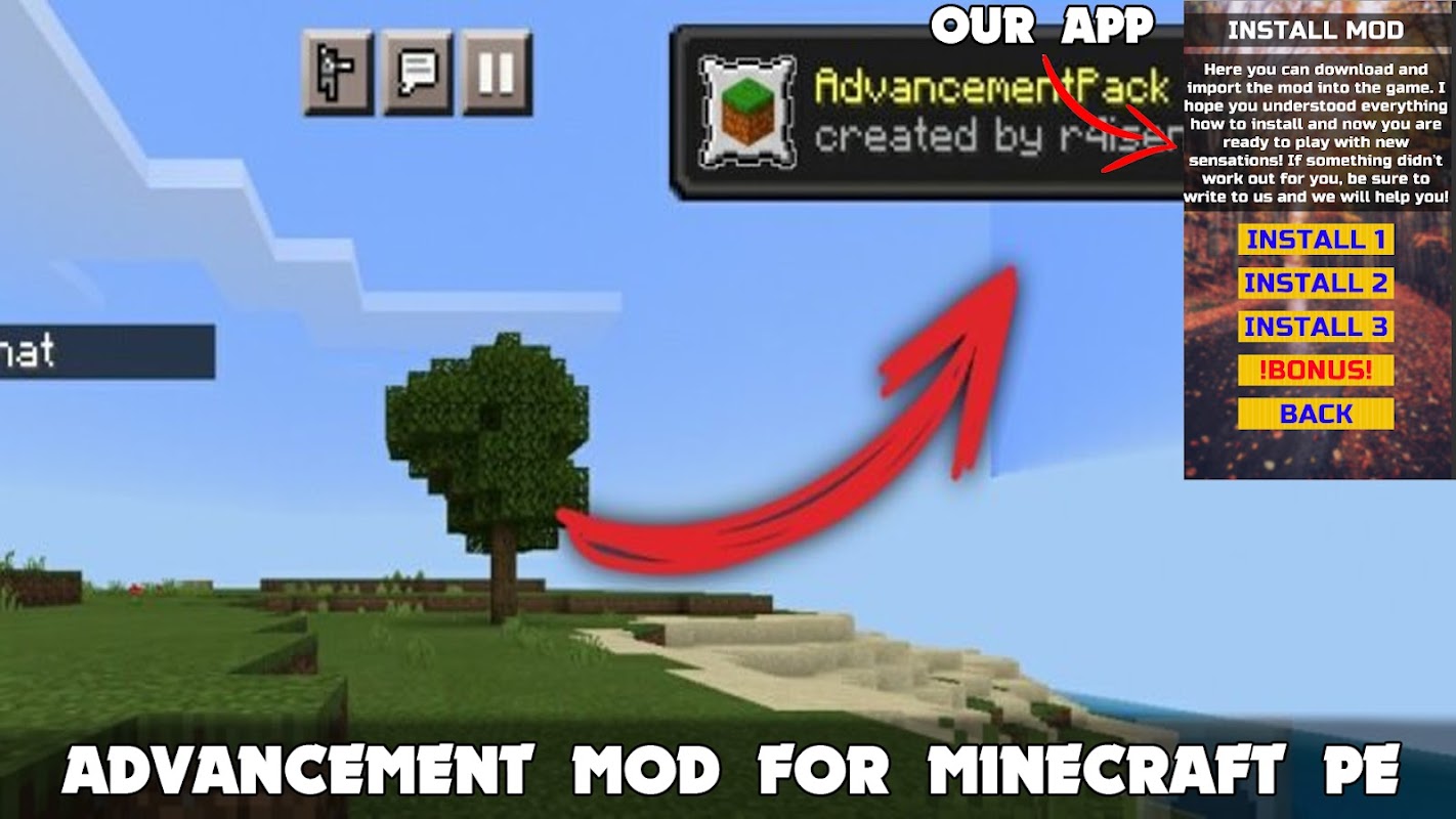 ❗❓Advancement Mod برای Minecraft PE❗❓😋 AdvancementPack را اضافه می کند - مد Advancements جاوا به شما پیشنهاد می کند که رابط کاربری و گیم پلی بازی را در Minecraft به ساده ترین روش بهبود بخشید: با معرفی ویژگی های مشابه در نسخه جاوا دنیای بلوکی. ما دستاوردها و صفحه نحوه بازی را لمس کردهایم، اما مطمئن هستیم که در آینده تغییرات بیشتری خواهیم داشت. منوی جدید تمام پیشرفت هایی را که برای بازی در دسترس است ارائه می دهد. برای باز کردن قفل آنها، باید کارهای خاصی را انجام دهید که در آنجا نیز توضیح داده شده است. درست است، فقط به زبان انگلیسی. دستاوردهای پاپ آپ: اگر بازیکن بتواند دستاورد را کامل کند، یک پیام پاپ آپ در بالای آن ظاهر می شود. صدای مربوطه هم ظاهر میشه.😀