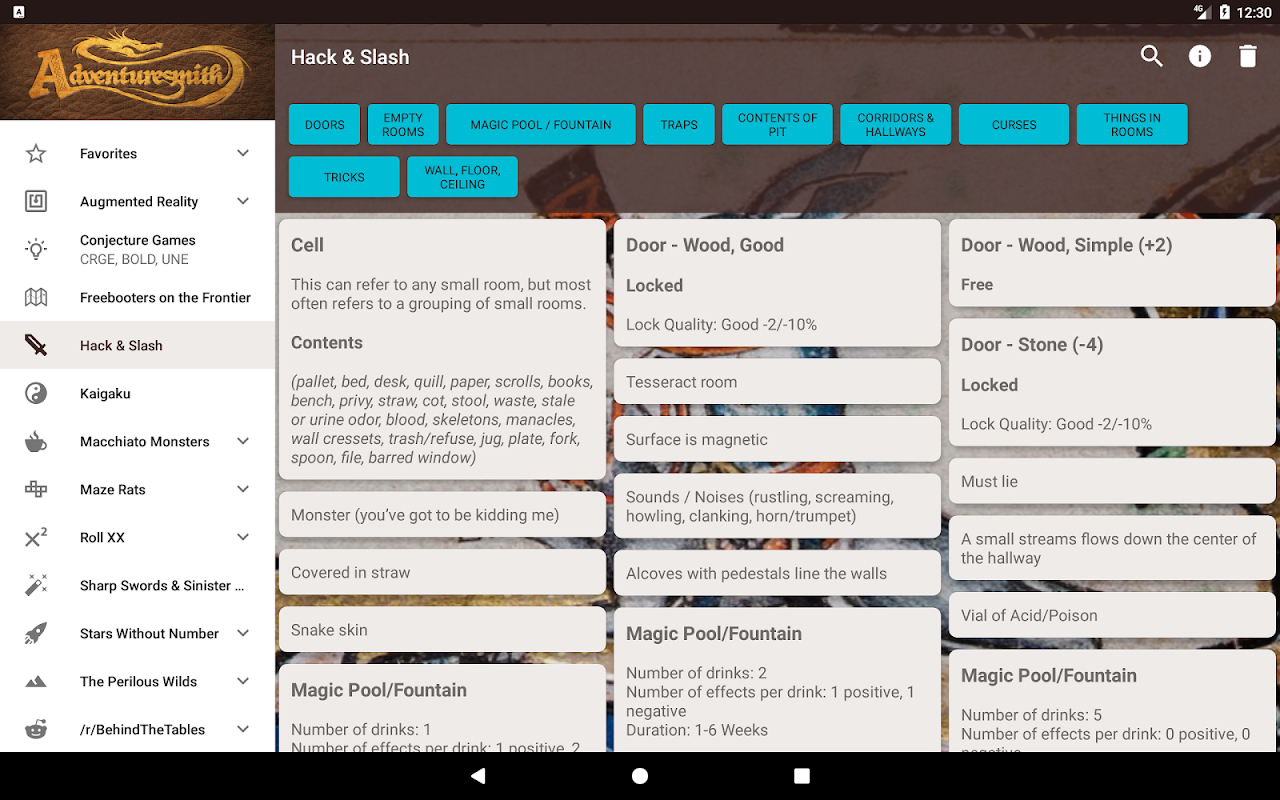 Adventuresmith به طور تصادفی تولید عناصر برای آر پی جی تبلتب - نام، جادوها، اقلام، هیولا، شخصیت ها، جهان بیگانه، و غیره بسیاری ژنراتور سیستم خنثی هستند، و می تواند مورد استفاده قرار گیرد به اضافه کردن عطر و طعم به تقریبا هر RPG تبلتب.