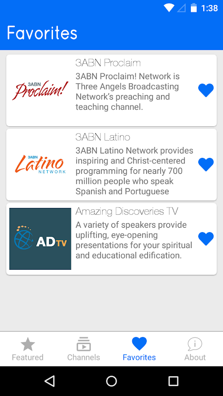 برنامه AdvenTV دسترسی آسان به برنامه نویسی آنلاین هفتم Adventist آنلاین را از انواع کانال های آنلاین رایگان فراهم می کند. این برنامه دسترسی به بیش از 38 بهترین کانال از 15 بهترین شبکه های Adventist را فراهم می کند. شما می توانید جریان هایی از 3ABN ، حقایق شگفت انگیز ، اکتشافات شگفت انگیز ، شبکه پخش بهتر زندگی ، تلویزیون کوهستان آبی ، پخش اول نور ، تلویزیون خوب خوب ، کانال امید ، لوگو تی وی وی ، شبکه پخش لوما لیندا ، MissionTV ، اسرار ناشناخته ، تلویزیون Paraiso و موارد دیگر مشاهده کنید. اگر موارد دلخواه دارید ، می توانید آنها را برای مشاهده سریع ذخیره کنید یا از جستجوی پیشرفته ما برای کشف موارد جدید استفاده کنید. AdvenTV یک سرویس رایگان از Breath of Life Fellowship است.