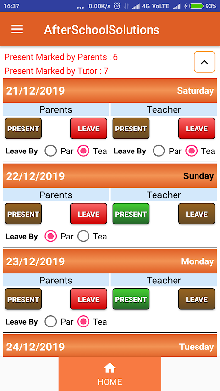 Parents and tutors can mark / view attendance and can submit valuable feedback.
