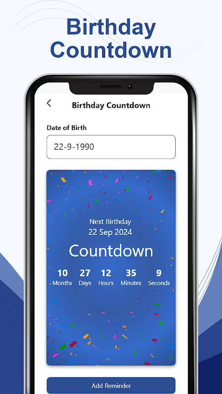 یک برنامه ماشین حساب سن برای تعیین سریع و راحت سن افراد طراحی شده است. کاربران تاریخ تولد خود را وارد می کنند و برنامه سن افراد را بر حسب سال، ماه و روز محاسبه و نمایش می دهد. این برنامه رابط های کاربر پسند را به نمایش می گذارد، محاسبات دقیق انجام می دهد، و همچنین شامل ویژگی های اضافی مانند شمارش معکوس برای تولدهای آینده، یادآوری، ماشین حساب زمان، ماشین حساب سن کودک، ماشین حساب روزهای کاری و داشبورد خانوادگی است.