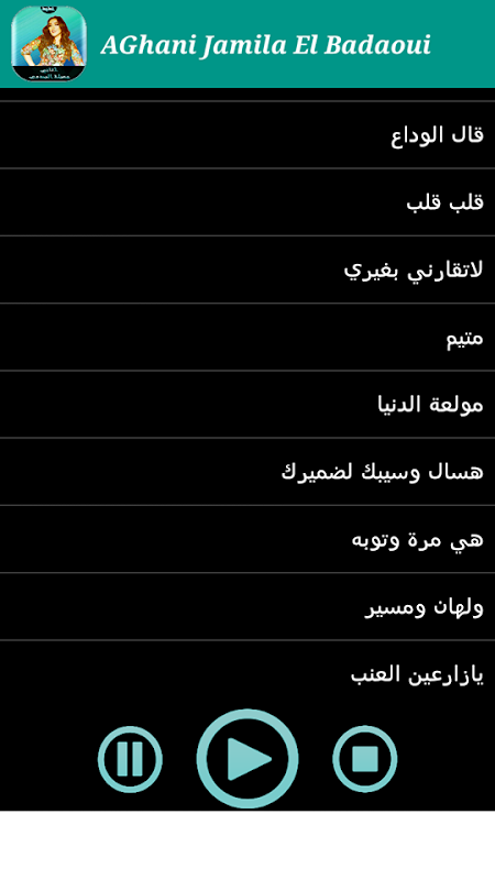 نقدم لكم هذا التطبيق للفنانة جميلة البدوي والتي شاركت في مجموعة من المسابقات منها استوديو2M ونجم الخليج و ستجدون في هذا التطبيق مجموعة من الاغاني الجميلة التي عرفت شهرة و نجاحا :