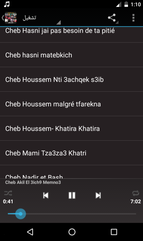 يحمل تطبيق اغاني aghani ray مجموعة من اغاني راي منها :