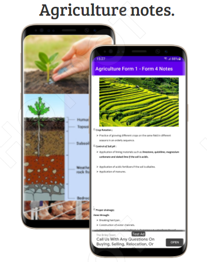 کشاورزی: فرم 1 - 4 نت ویژگی های فرم 1 تا 4 یادداشت های استاندارد کشاورزی KCSE را تشکیل می دهد. این اپلیکیشن برای تجهیز زبان آموزان و معلمان به مهارت ها و محتوای کشاورزی مناسب تنظیم شده است. این نرم افزار دانش آموزان را با مهارت در نحوه رسیدگی به مقاله کشاورزی 1، مقاله 2 و مقاله 3 در آزمون KCSE تیز می کند. این برنامه دارای موضوعات زیر در برنامه درسی است: